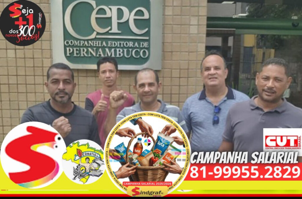 Daqui para encerrar o mês, os gráficos da Companhia Editorial de Pernambuco (Cepe) devem concluir a campanha salarial com um resultado positivo. Nesta semana, por sinal, já conseguiram garantir todas as cláusulas socioeconômicas acima da Lei do Gráfico no estado (CCT), inclusive a cesta básica – uma pauta de reivindicação que toda a categoria segue lutando para obter em Pernambuco. Gráfico: com luta tem ganho. Sindicalize-se!