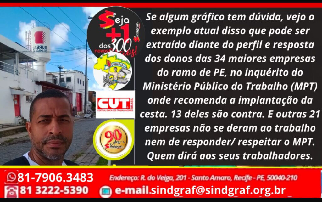 Se algum gráfico tem dúvida, vejo o exemplo atual disso que pode ser extraído diante do perfil e resposta dos donos das 34 maiores empresas do ramo de PE, no inquérito do Ministério Público do Trabalho (MPT) onde recomenda a implantação da cesta. 13 deles são contra, como a Multimarcas, Brascolor, Brasileira, Colorata, ArtFast, Elite, SpeedMais, MaxGráfica, Provisual, Multipack, Plasticor e a MXM. Essas gráficas avaliam que o emprego e salário já está bom.