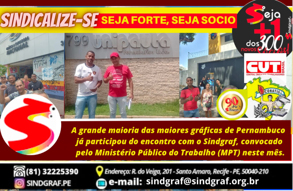 A recomendação da procuradora federal se estendeu para todas as gráficas convocadas que faltaram ao encontro. A ausência delas não passou despercebida pelo MPT. O órgão as intimará para que compareçam no MPT entre os dias 16 e 18 do próximo mês. O Sindgraf-PE garante a luta. Os gráficos garantem o sindicato. Sindicalizem-se!